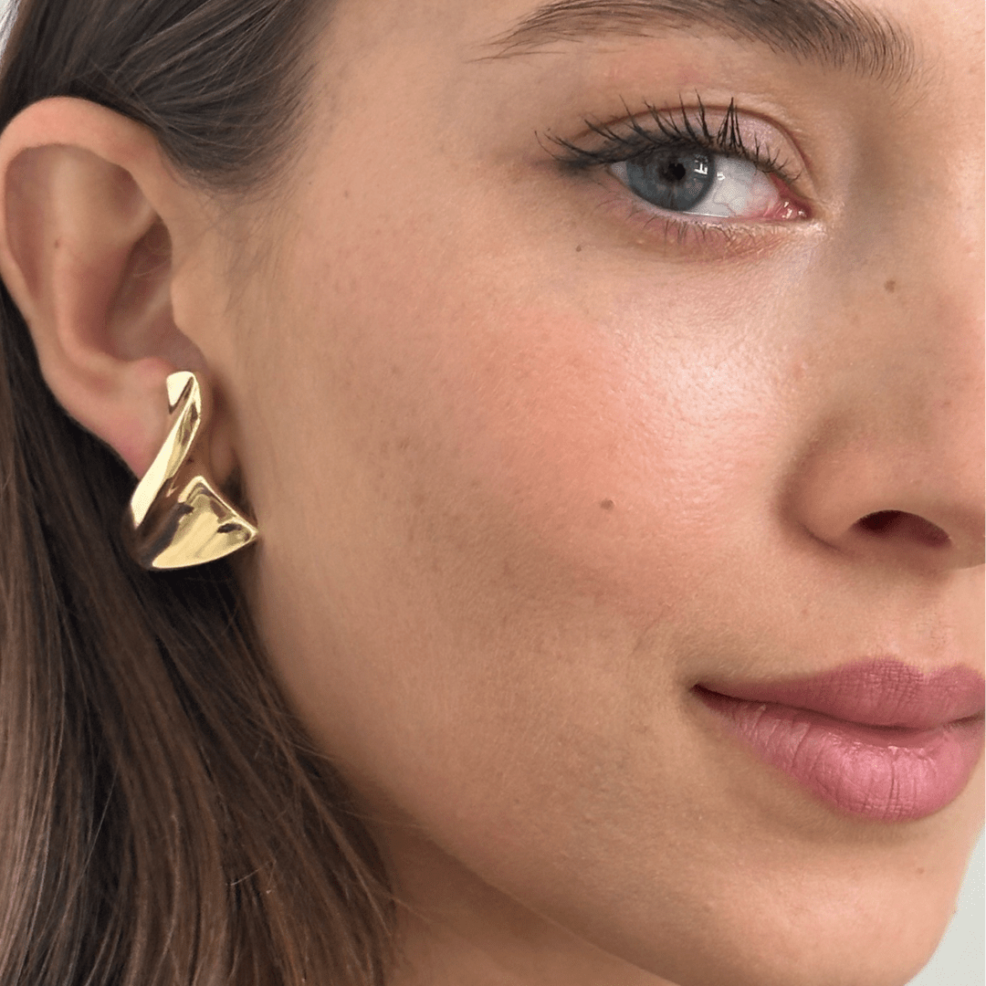 Our gold-plating is a sterling silver base dipped in 0.5 microns of 18K gold. We cast earrings and other pieces in it to mimic the luster of solid gold.